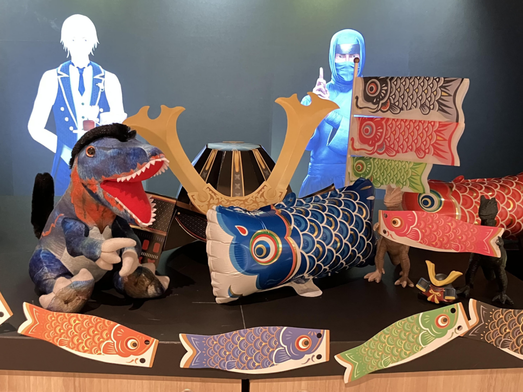 공룡들도 투구를 준비하거나 잉어 연을 가지고 놀면서 여러분을 설레는 마음으로 기다리고 있습니다.꼭 용감하게 변신한 공룡들을 만나러 와 주세요!