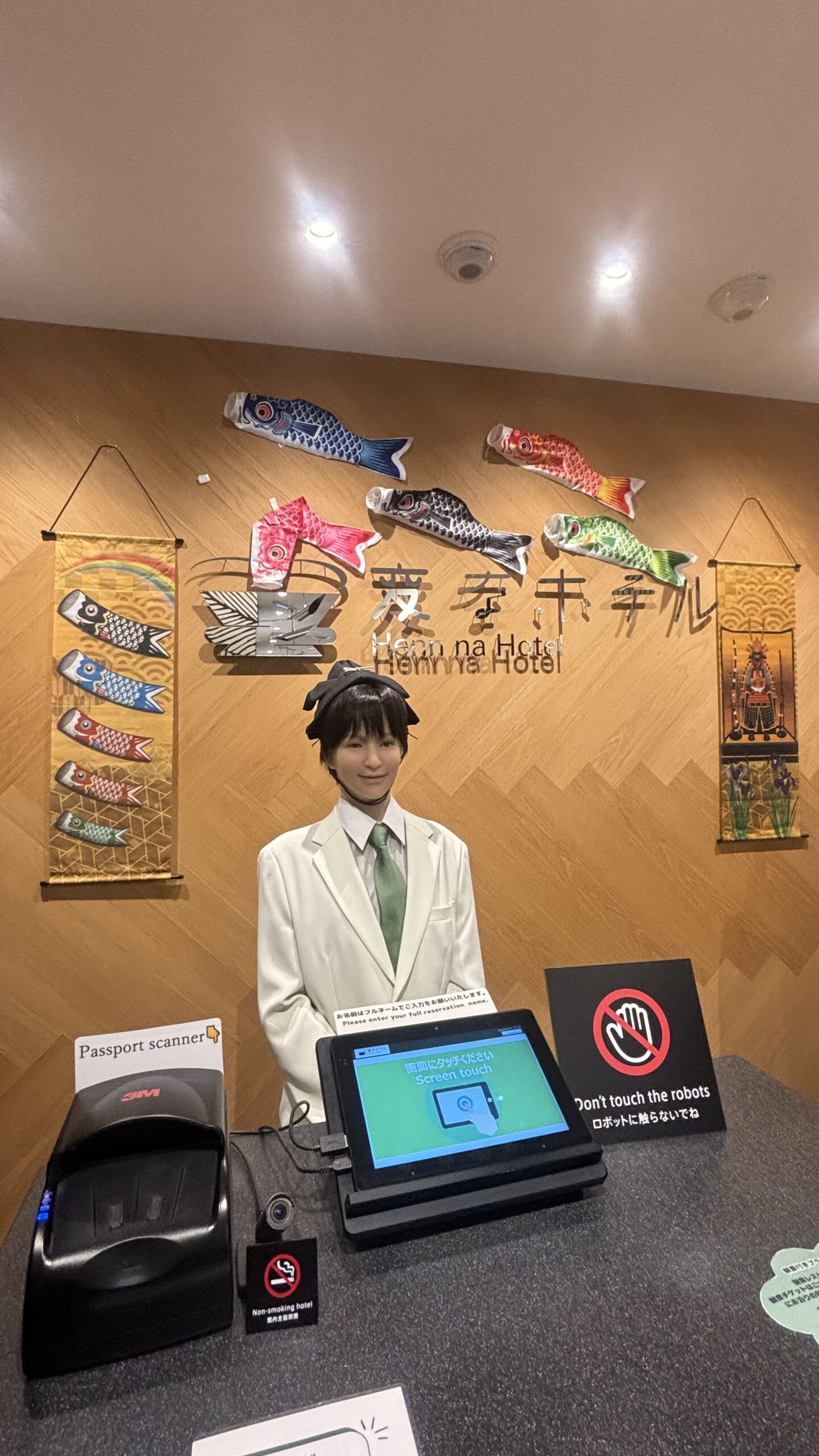 海茵娜飯店東京 赤坂在櫃檯裝飾鯉魚旗,歡迎各位的蒞臨。鯉魚旗被視為「成長與出世的象徵」,據說是吉祥的象徵。