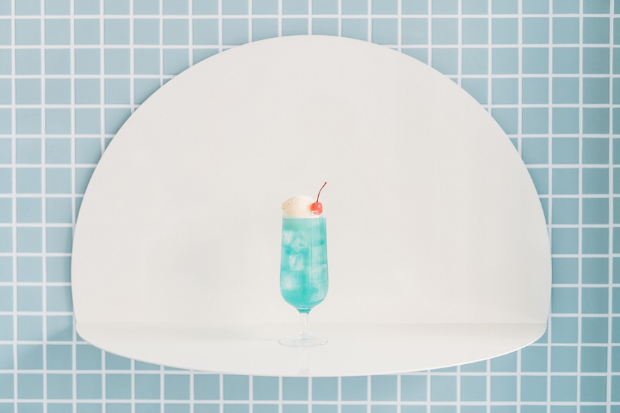 請在淡雅的粉藍色店內享受如同在空中或雲中般的氛圍。